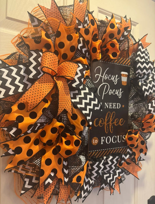 Hocus Pocus I Need Coffee to Focus Handmade Custom Wreath