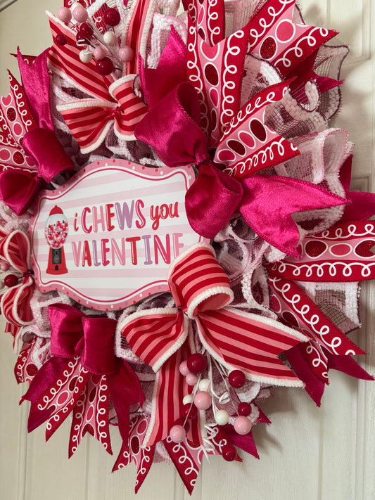 Valentine's Day "I Chews You Valentine" Handmade Wreath