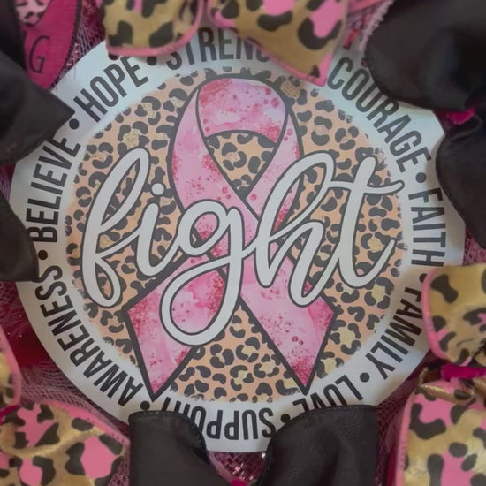 Custom Fight Breast Cancer Pink & Cheetah Wreath