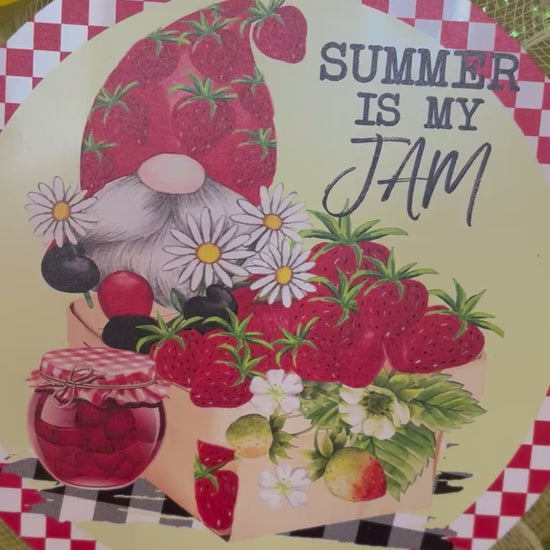 Custom Handmade Gnome & Strawberry 'Summer is my Jam' Wreath