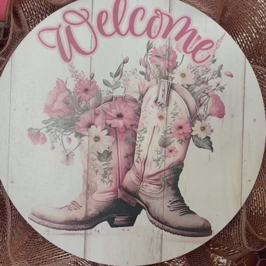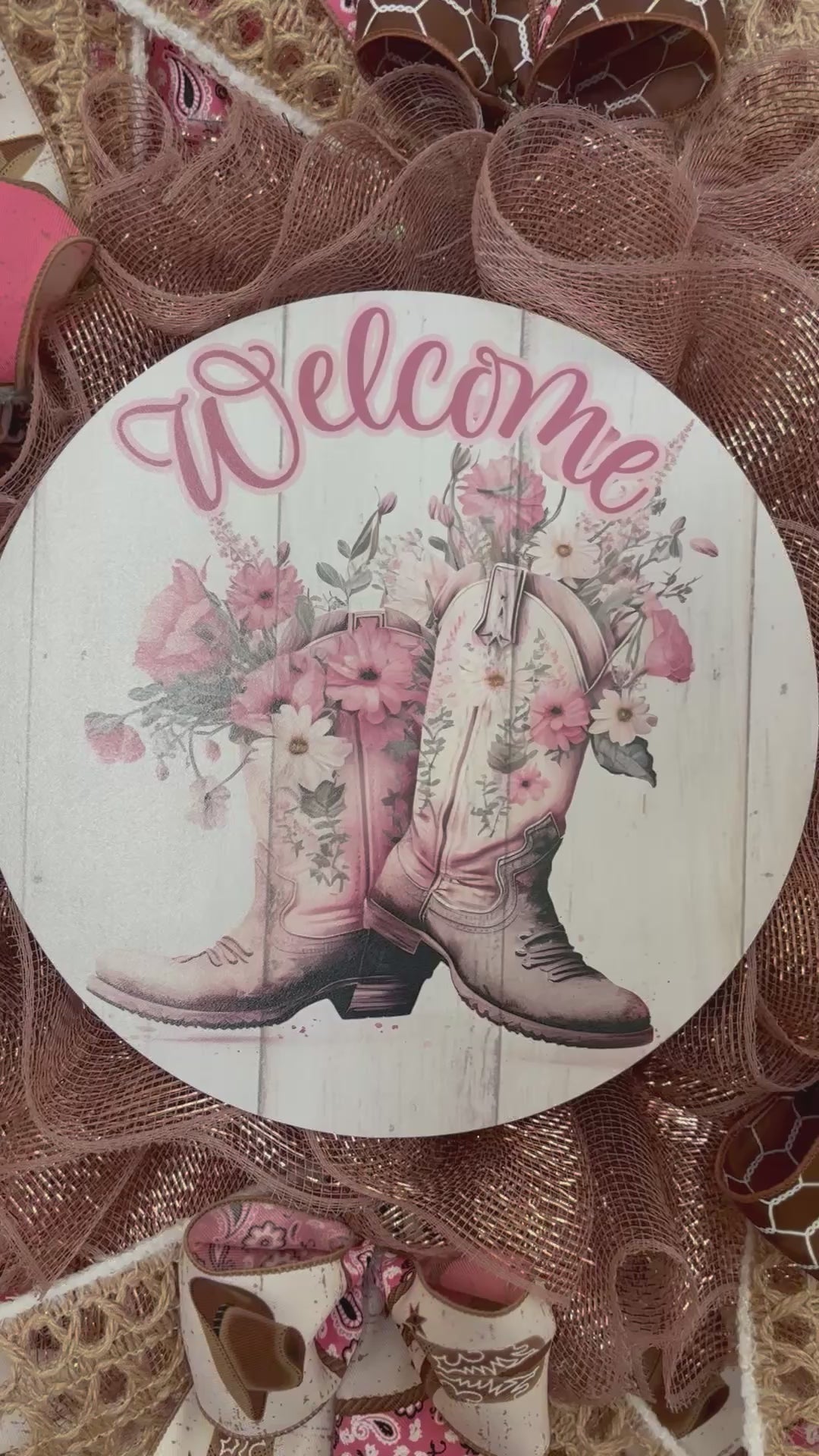 Custom Handmade Welcome Cowgirl Boots Wreath