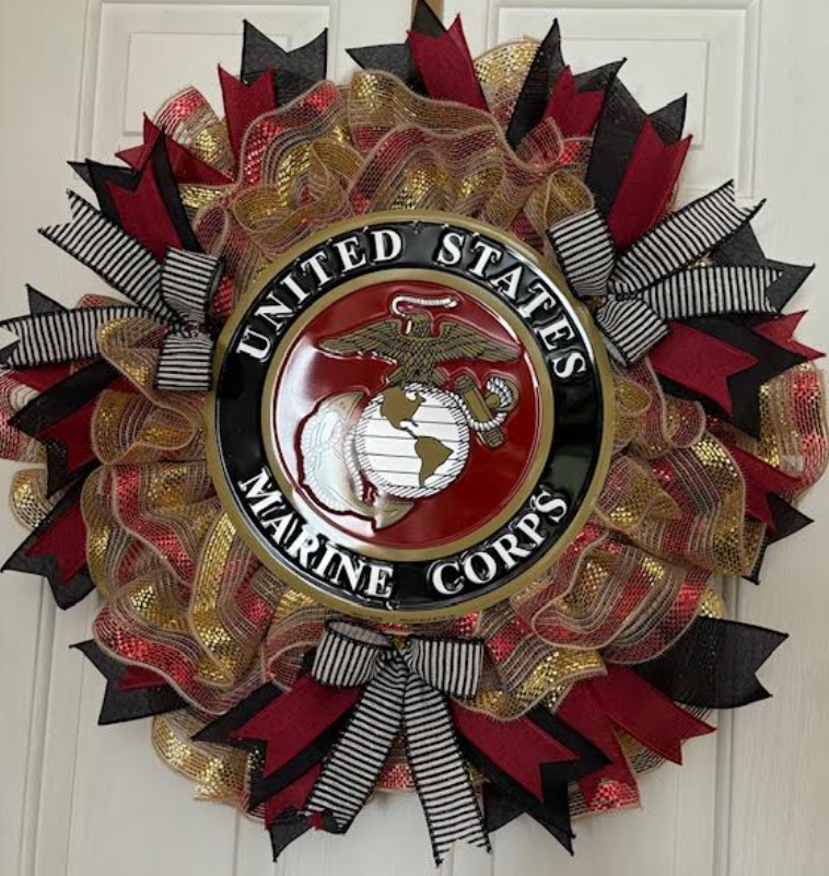 This “United States Marine Corps” wreath is perfect for your front door or any room in your home. Show your support for those men and women who have served or who are currently serving in the Marines by displaying this wreath at your home or office.